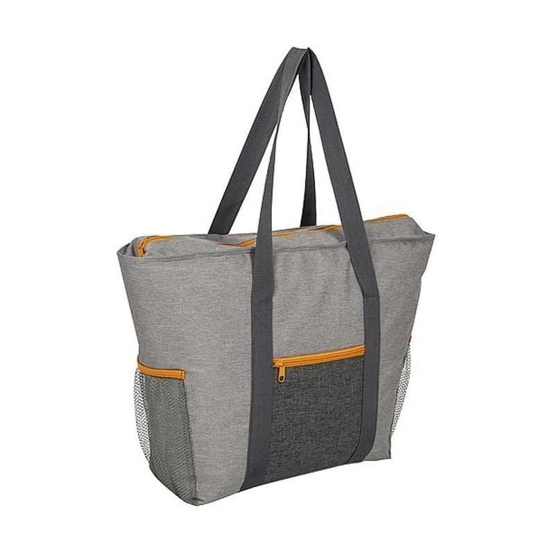 De koeltas heeft een inhoud van 12 liter en is voorzien van een voorvak met rits en 2 mesh zijvakken. De buitenzijde van de koeltas is gemaakt van een stevige laag Oxford polyester in 2 verschillende tinten grijs.