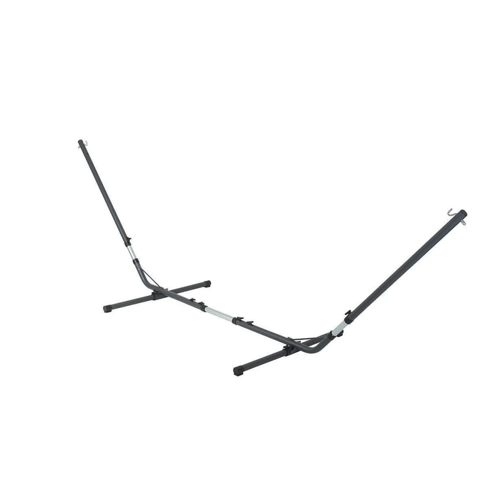 Een fraai afgewerkte universele hangmatstandaard van Bo-Camp waarvan het frame in zowel de lengte als de hoogte te verstellen is. Dit maakt hem geschikt voor bijna elke hangmat. Gewoon neerzetten en afstellen, hangmat ophangen en relaxen maar.