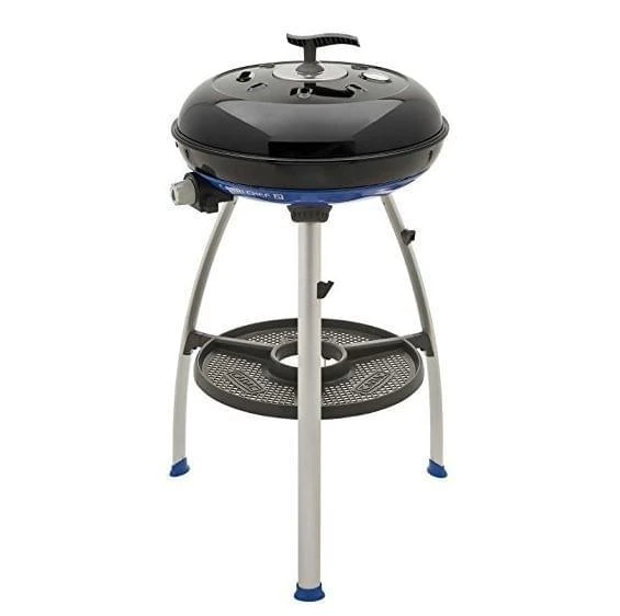 De Cadac Carri Chef 50 is één van de meest complete gasbarbecues. Deze Bbq/Chef Pan Combo bevat een pandrager, een barbecueplaat, een mooie platte Chef pan en een deksel. De Carri Chef 50 staat op 3 stevige, afneembare poten waartussen een rekje geplaatst is. Dit verwijderbare rekje zorgt niet alleen voor extra stabiliteit, maar zorgt ook voor wat ruimte om bijvoorbeeld kruiden of barbecuegereedschap neer te leggen. Ontsteking van de Carri Chef 50 kan zeer eenvoudig door middel van de piëzo knop. Hierna is de brander traploos instelbaar. Na gebruik kan de BBQ compact worden opgeborgen in de meegeleverde draagtas.