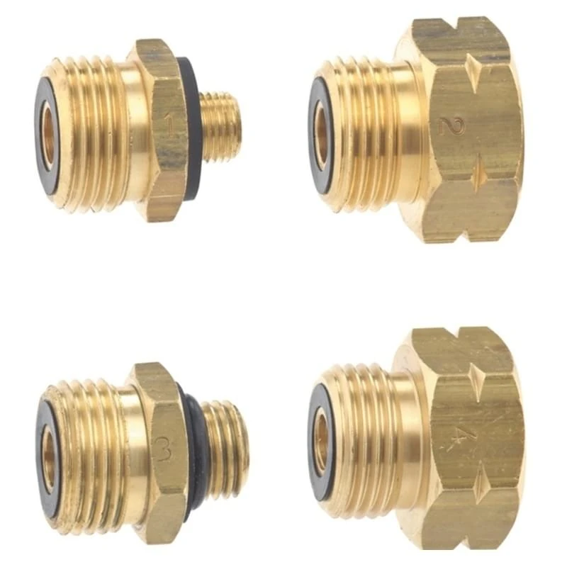 In het buitenland komt het nog wel eens voor dat de gasdrukregelaar niet op de gasfles past. Met de verloopstukken Euroset van Gimeg kan je de regelaar aansluiten op de gasfles.