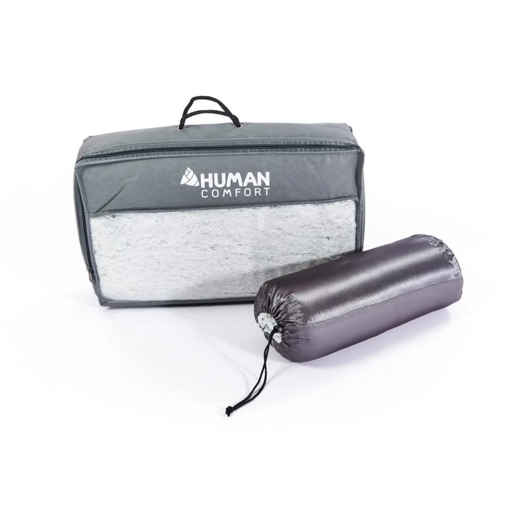 De bovenzijde is gemaakt van ‘konijn zachte’ fleece en de onderzijde van suède zacht polyester (micro suède). Door middel van de rits kan de hoes eenvoudig verwijderd worden en is wassen mogelijk. Een tasje om de Jacou XL gecomprimeerd in mee te nemen wordt bijgeleverd.