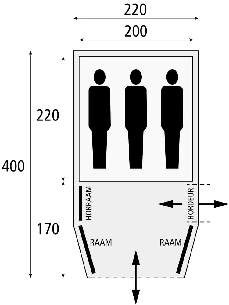 De Blackhawk 200 zet je makkelijk en snel op. Zelfs wanneer je alleen bent is dit makkelijk te doen. De ingangen aan de voor- en zijkant zorgen ervoor dat je altijd en overal gemakkelijk de tent in en uit kan lopen. De zijdeur kan je afsluiten met een hordeur en alle ramen kan je verduisteren.