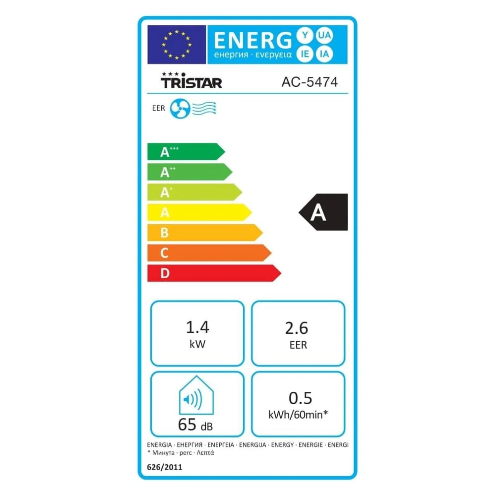 Deze mobiele airconditioner is compact en dankzij het strakke design kan je deze overal gebruiken. Met het lage energie verbruik valt de AC-5474 in de categorie energie label A. De Mobiele Airco is op drie manieren te gebruiken; om te koelen, om de lucht te ontvochtigen of als ventilator. Zo kun je deze airco van Tristar op elk gewenst moment aanpassen aan je persoonlijke voorkeur of aan de omstandigheden.