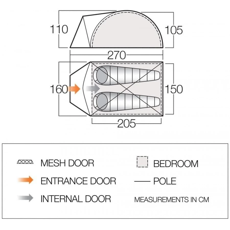 Deze mooi vormgegeven Alpha 250 CLR tent van Vango biedt voor twee personen ruime slaapplaatsen en met een hoogte van 110 cm kun je wellicht niet staan, maar qua zithoogte geeft het je een ruimtelijk gevoel. Naast het slaapgedeelte is er in de voorzijde van de tent ook plek voor je bagage. De Diamond Clear ramen zorgen voor veel licht, terwijl de Nightfall Bedroom Technology ervoor zorgt dat de slaapcabine verduisterd is. Je slaapt heerlijk donker en kunt zelfs eventueel uitslapen, wat heerlijk is tijdens je vakantie.