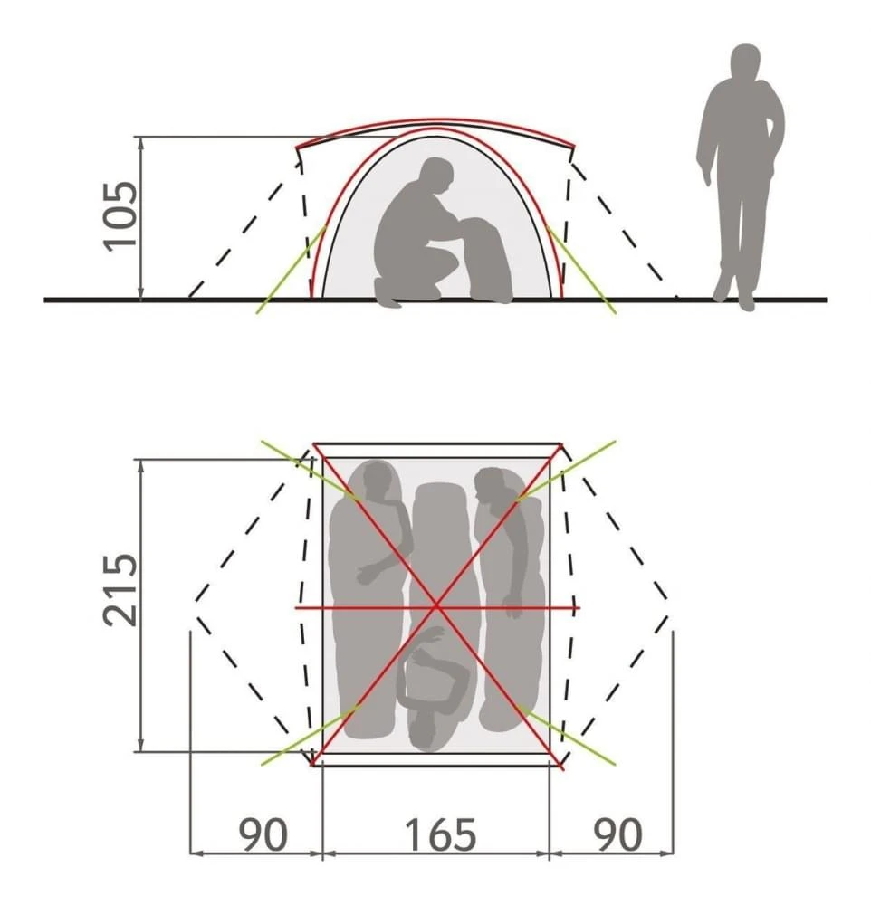 - Buitentent: 100% Polyester 75D PU coating 3000mm