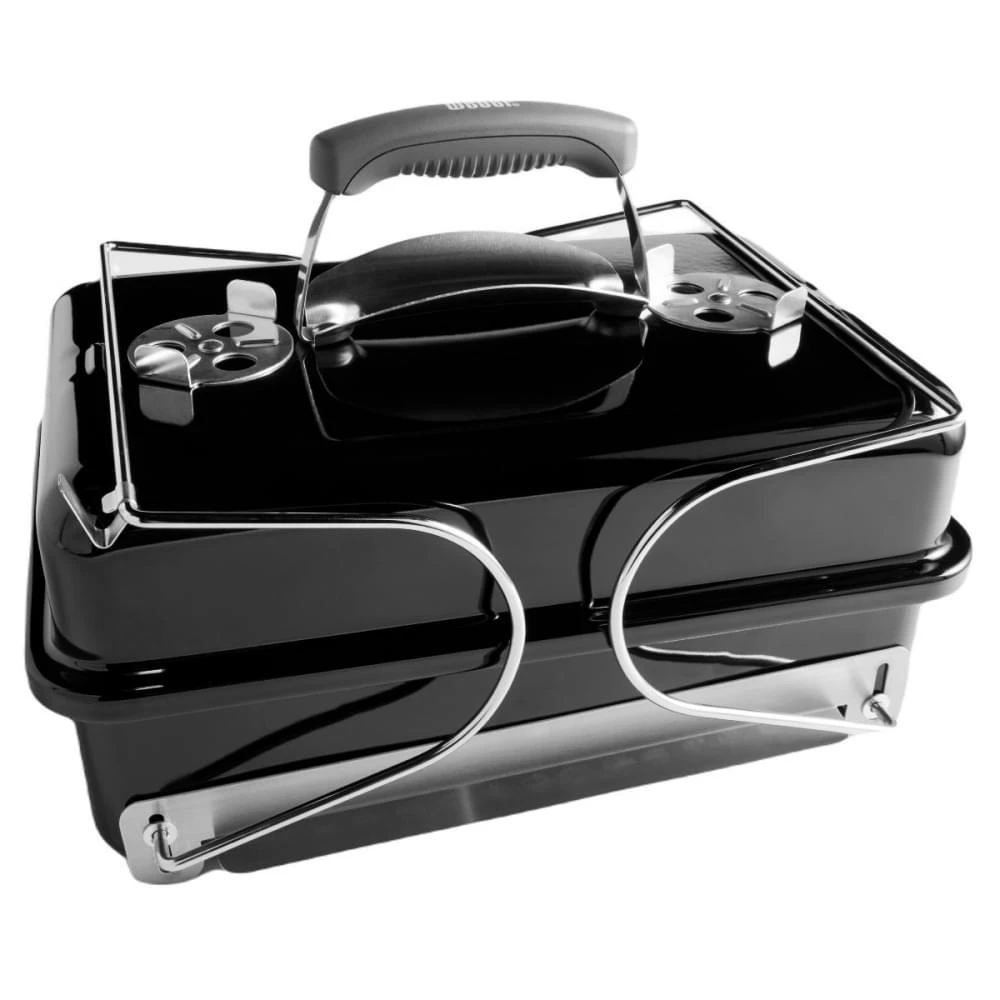 De Weber Go-Anywhere is een compacte barbecue die doet wat hij beloofd. Het is een draagbaar ontwerp, dat maakt deze barbecue ideaal voor onderweg en op de camping. De beugels van deze Weber Go-Anywhere dienen ook gelijk als poten, zo kan je de barbecue stevig neerzetten. de Go-Anywhere van Weber is het vierkante broertje van de Smokey Joe.
