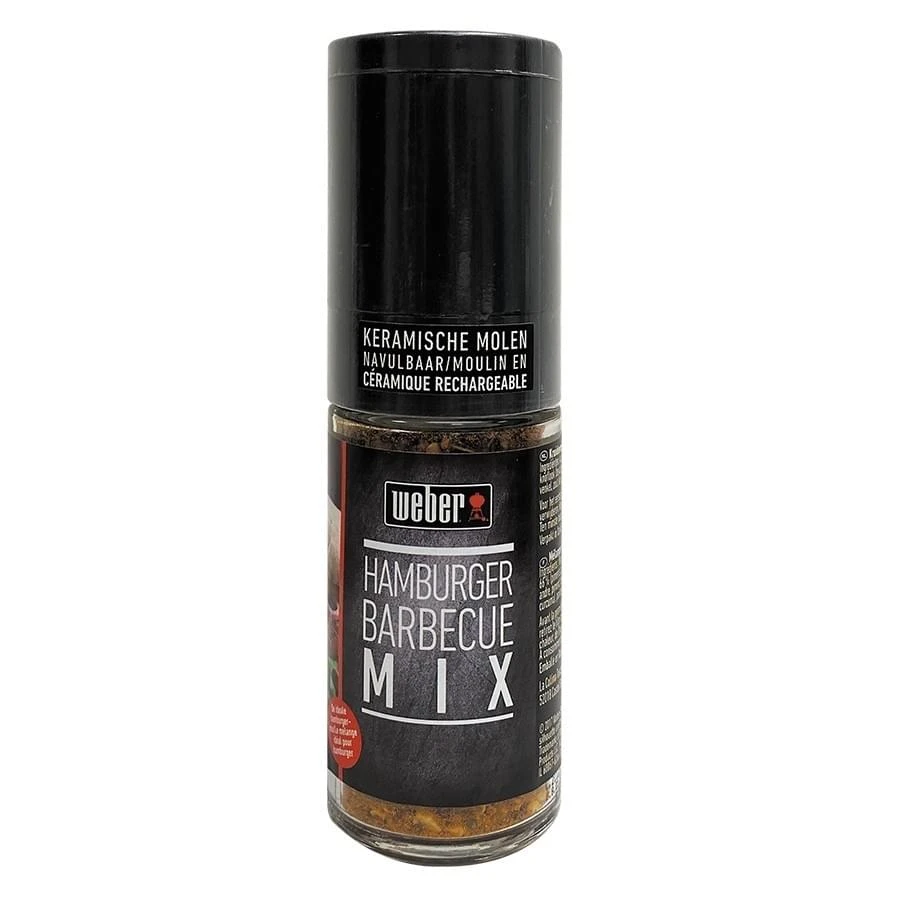 Hamburger BBQ Mix kruiden van Weber in een handige kruidenmolen. De keramische kruidenmolen is instelbaar en navulbaar.